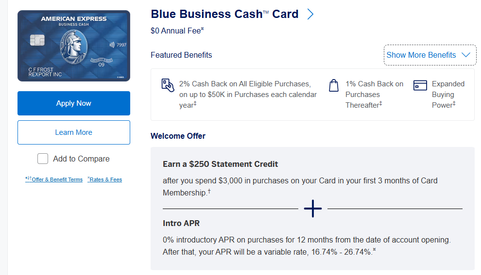The American Express Blue Business Cashâ„¢ Card is positioned for established small businesses with stronger personal credit profiles. It combines straightforward cash back with premium-level purchase protections and account management tools.